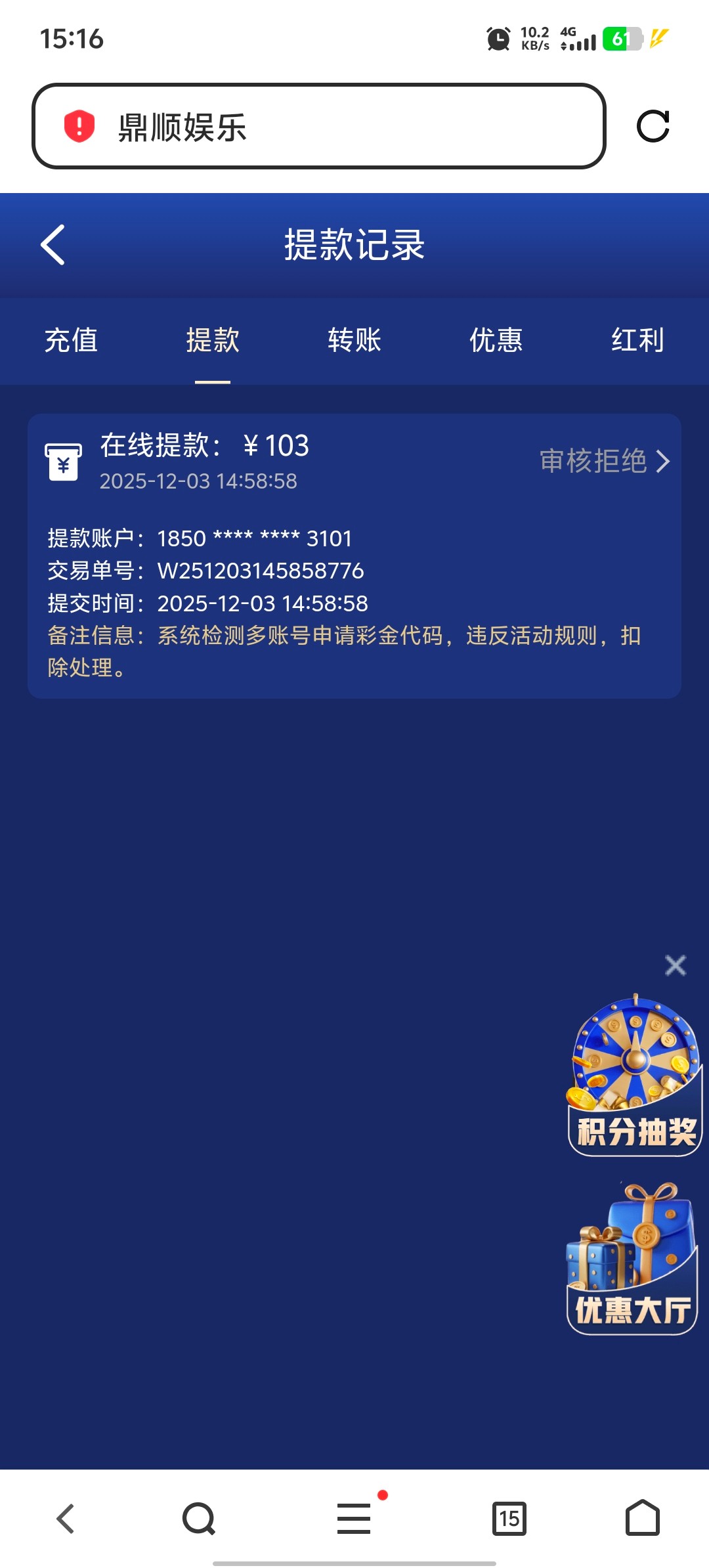 申请方式:充值时选择相应优惠,充值成功奖金即可自动到账!