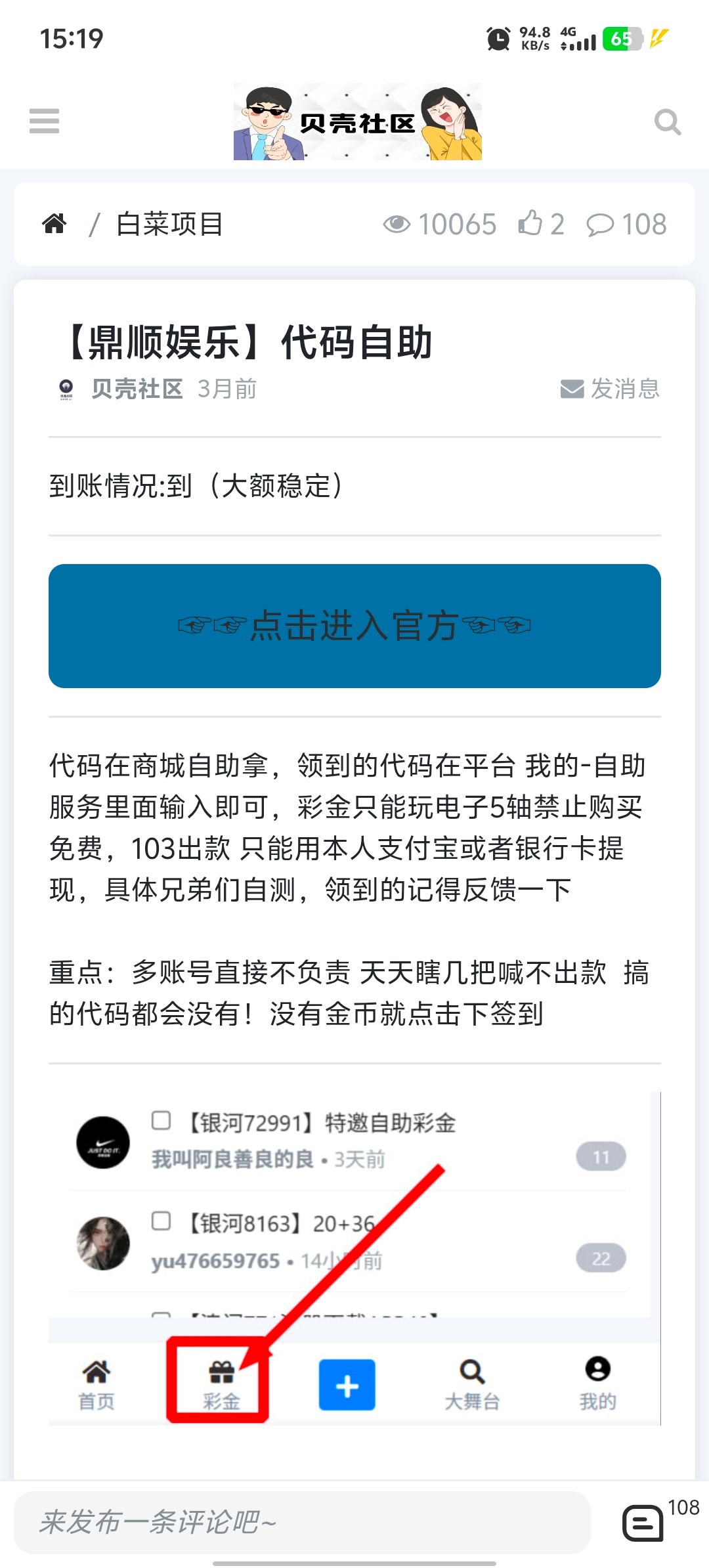 代码在商城自助拿,领到的代码在平台 我的-自助服务里面输入即可,彩金只能玩电子5轴禁止购买免费,103出款 只能用本人支付宝或者银行卡提现,具体兄弟们自测,领到的记得反馈一下