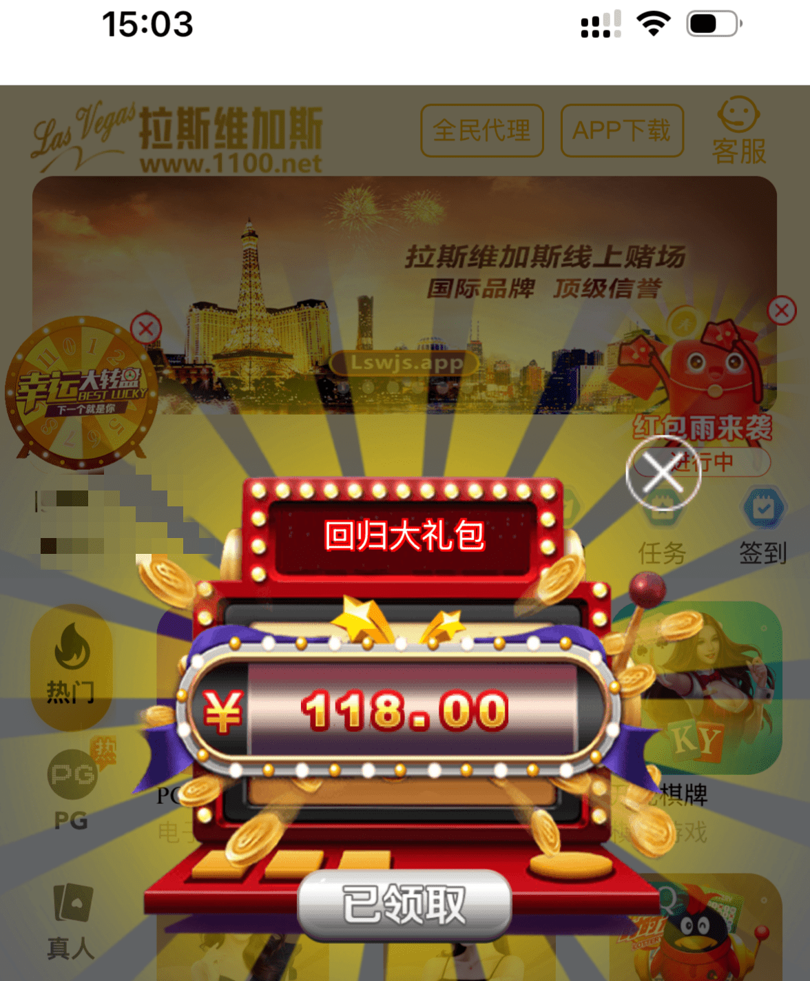 老用户登录看看有没有回馈彩金,有的直接回馈118彩金,好像充值过的才有,具体自测吧。