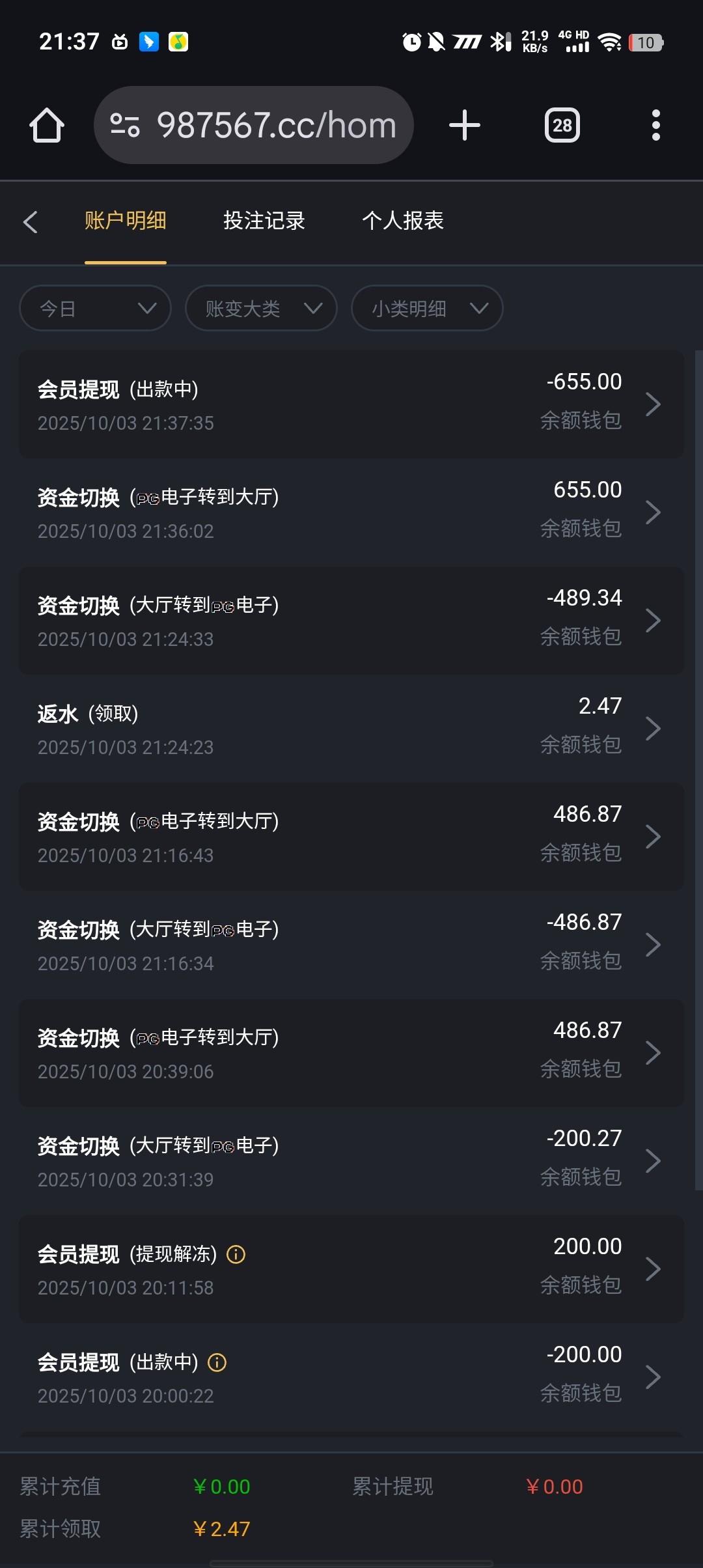 pbb999 半黑,看命,建议别充,你充五百多进去要是提几千肯定不给的,这种逼台子,一百两百还好,充五百多要是被黑了今晚你肯定睡不着
