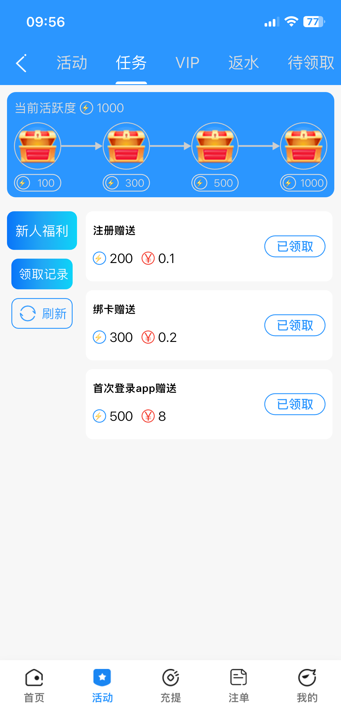 早领完了,搏大也挂逼了,充完后隔天还会有回访8毛