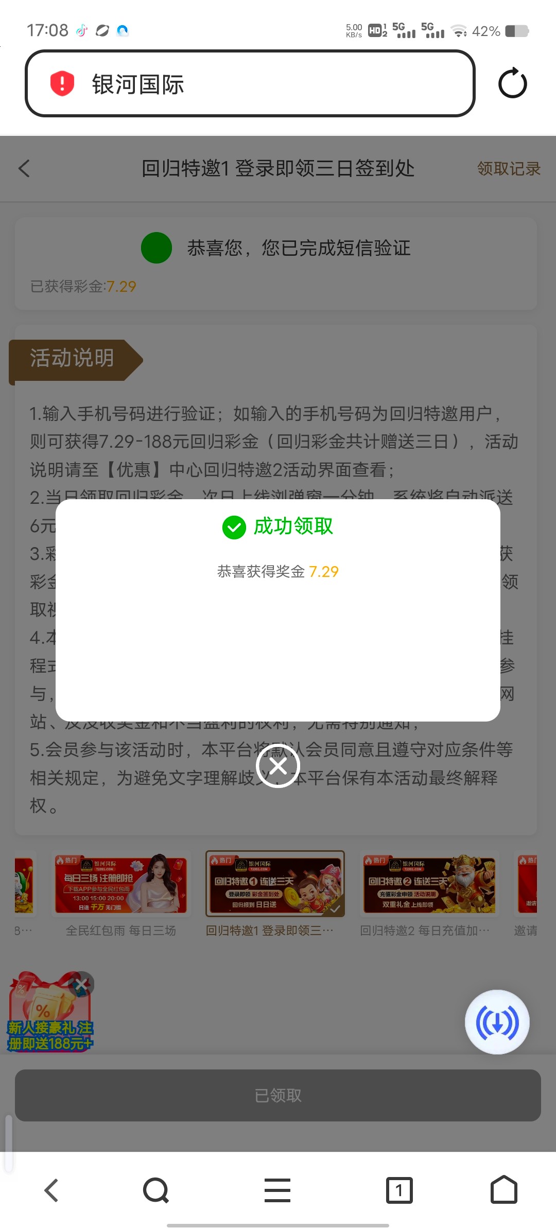 早领了,三天都没水,之前还验证手机号就有18.88,人人有那个,进那个页面自动就送了,都不需要验证