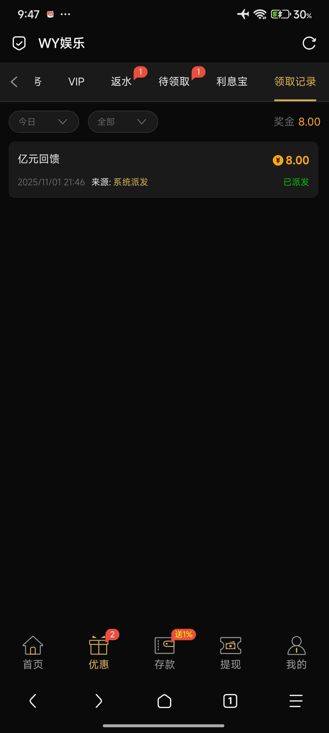 【万赢回馈彩金】