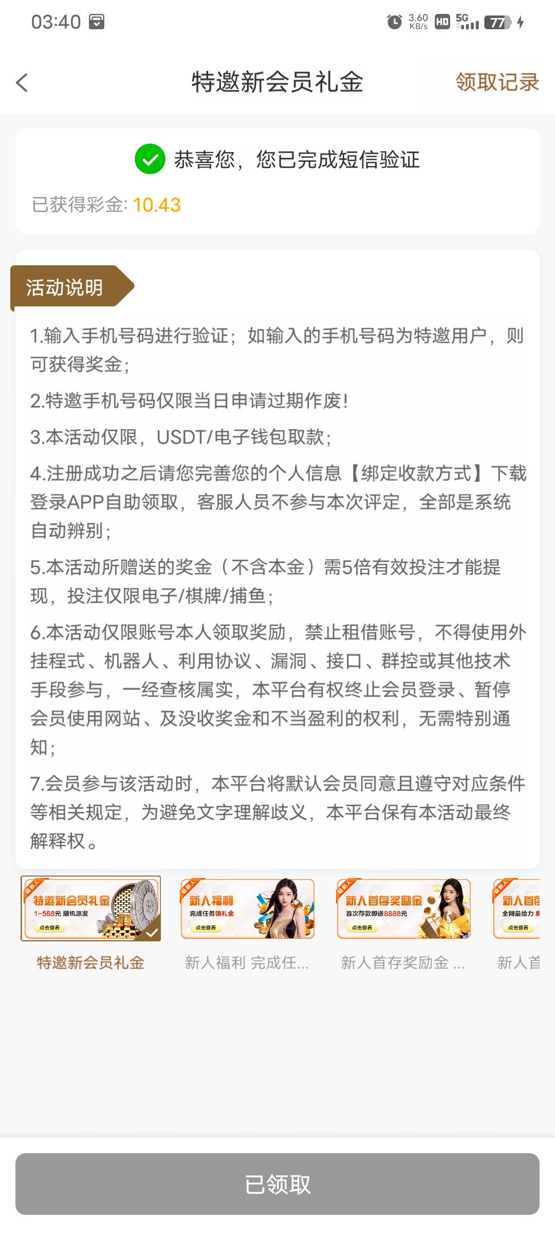 澳门新高梅特邀短送10元