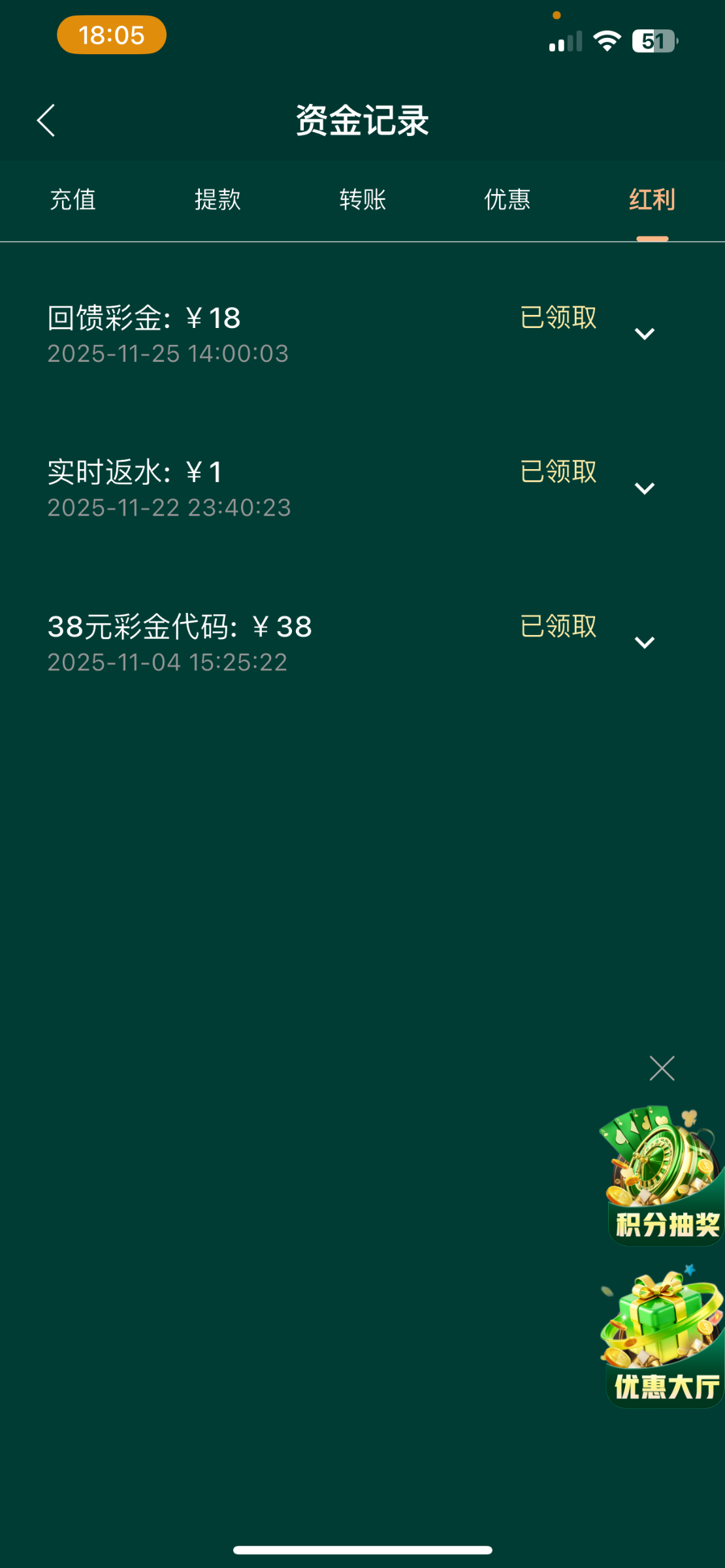 大部分都有,我也充值过一次而已,你咋没有,奇怪了