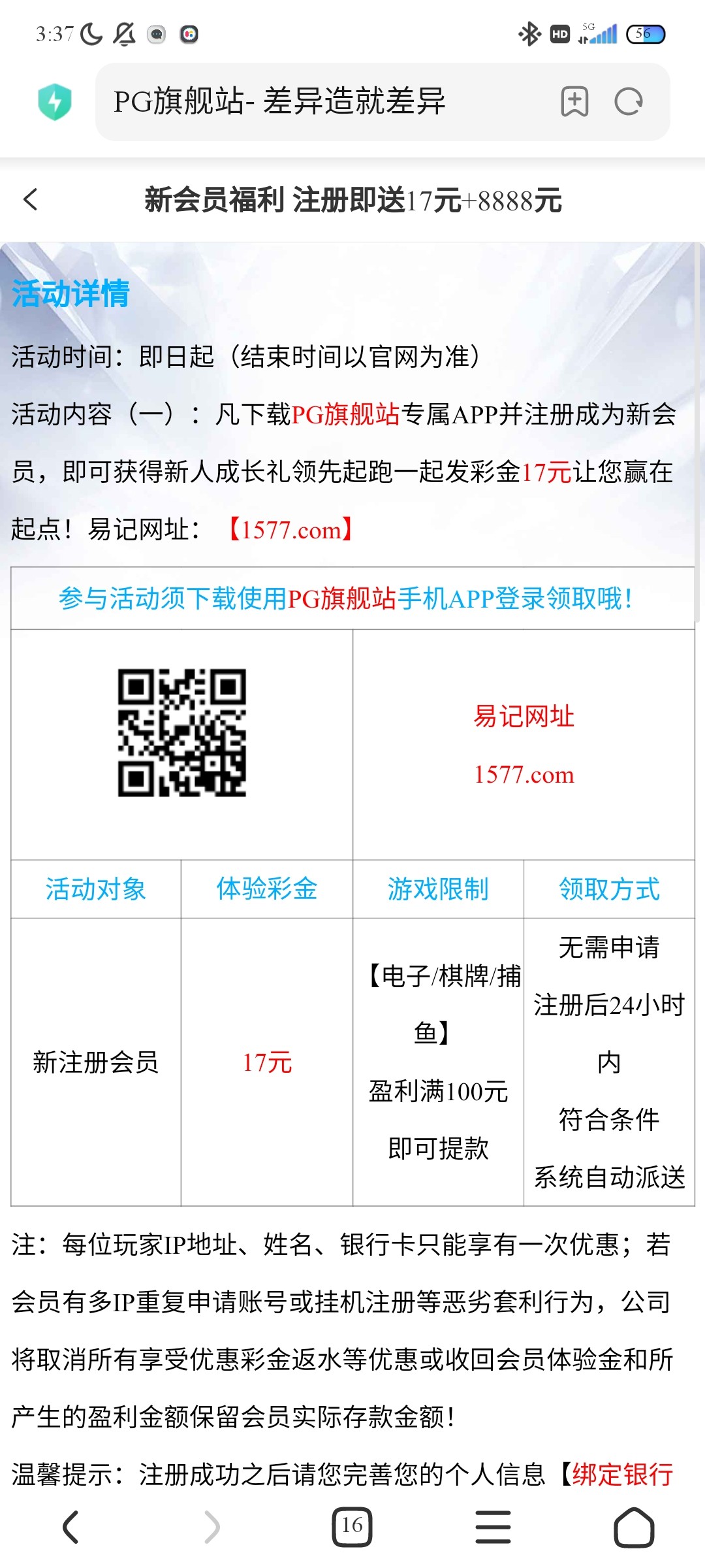 注册绑定银行卡24小时内自动送17 没有无视