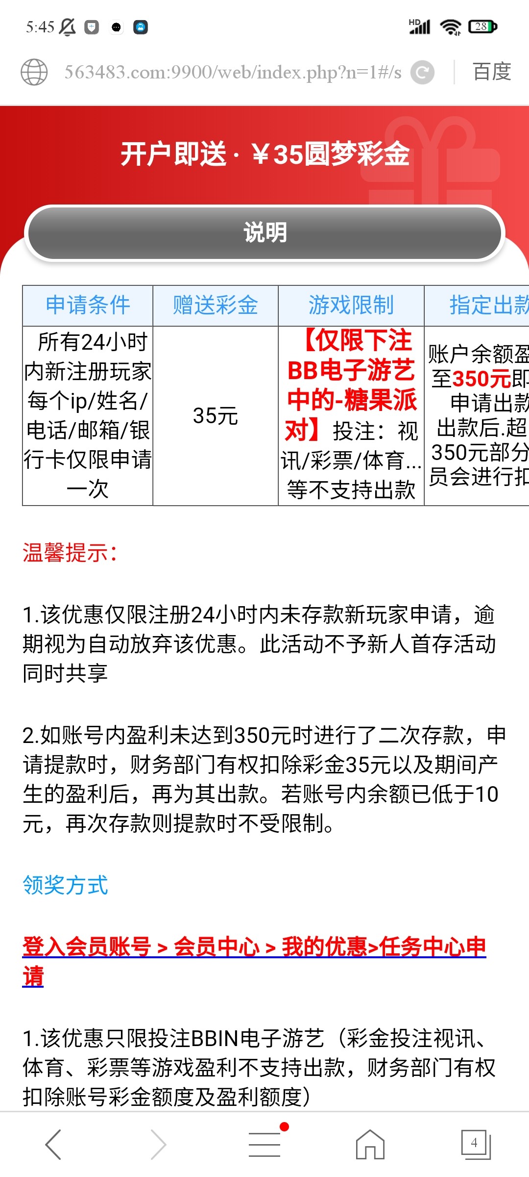liaoyuan 尊敬的玩家您好: 因许多会员恶意申请注册35彩金,导致平台下架此项优惠,欢迎您充值后体验游戏进行出款,造成的不便敬请谅解