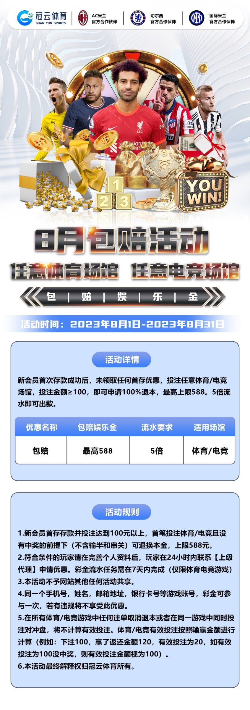 体育电竞包赔100%,最高588,五倍流水可提款。(体育电竞包赔图下方↓)