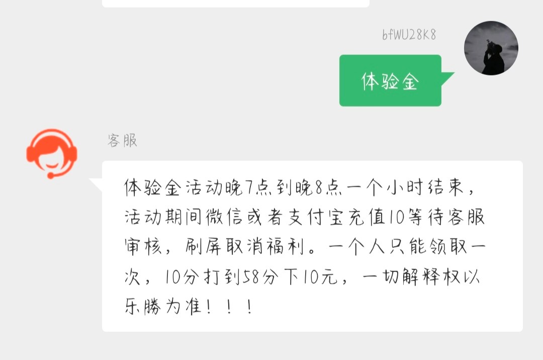 微信扫码登录,晚上7-8点用微信或者支付宝充值入口提交10,玩到58下分10