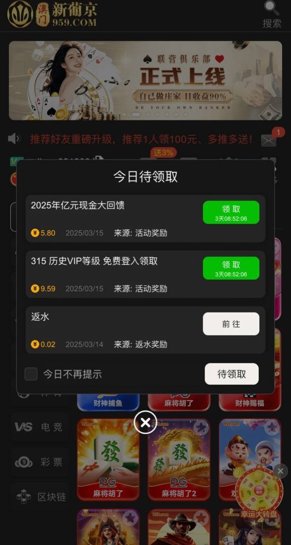 有号登录领取彩金,基本都有登录去看看吧彩金1倍流水提款,具体自测