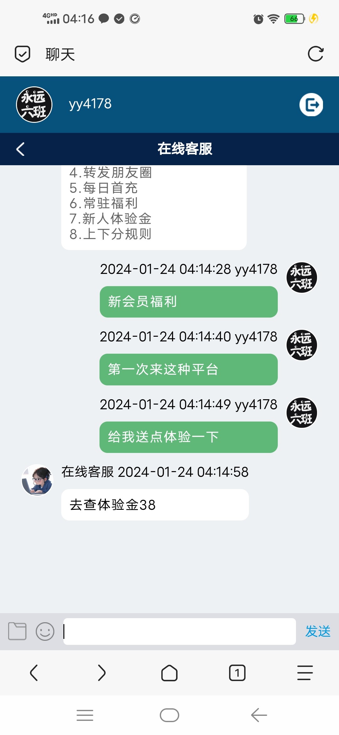 新会员注册进去直接找在线客服申请体验金,他说没有了你说点好听的就送了,充值提交38秒到