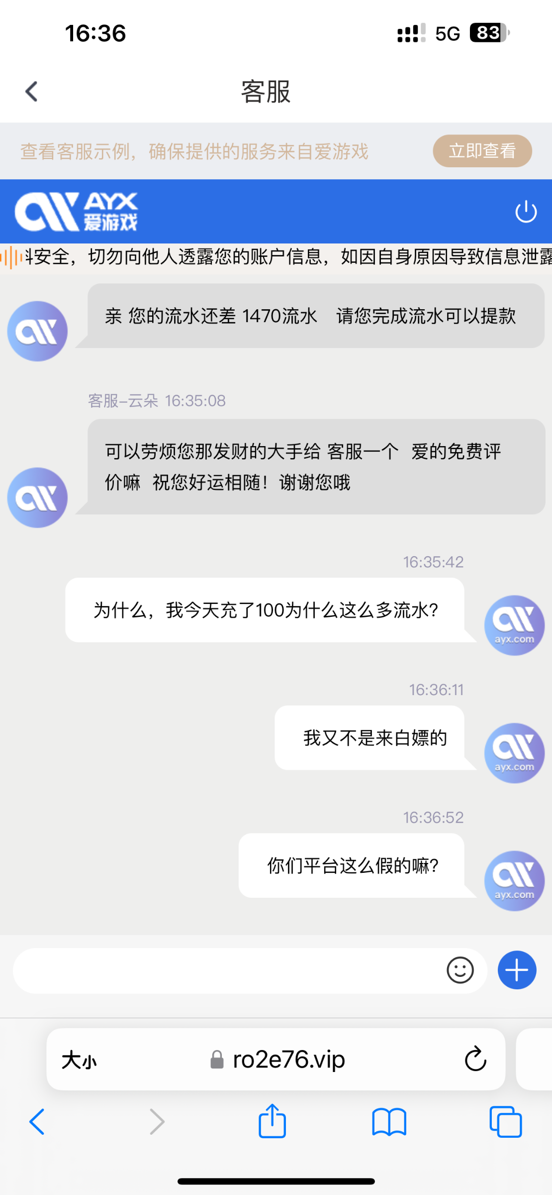 吗的,充值100打了两百多流水,提现失败,叫我打一千多流水才能,爱游戏妥妥的黑平台,大家不要去玩!